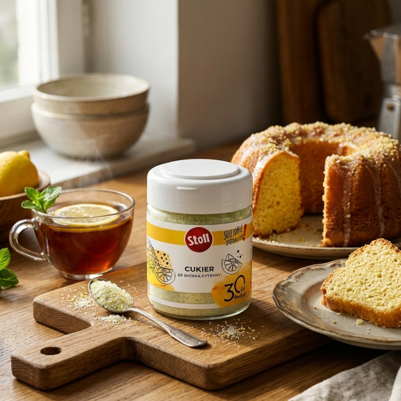 Cukry smakowe Stoll to coś więcej niż słodycz – to eksplozja aromatu! Dzięki sezonowaniu przyprawy oraz odpowiedniej metodzie mielenia najcenniejsze aromaty pochodzące z wysokiej jakości, odpowiednio wysuszonej, żółtej skórki cytryny zostają w naturalny sposób zamknięte w cukrze, aż do momentu użycia! Dzięki temu przyprawa fantastycznie rozpuszcza się i chętniej uwalnia smak oraz pełen bukiet cytrusowych aromatów.