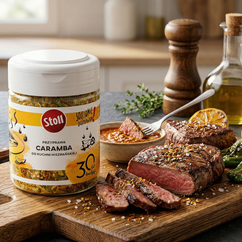 Opis: Oryginalna, pikantna kompozycja przypraw inspirowana kuchnią hiszpańską. Doskonała do steków, drobiu, grillowanej ryby, raclette, fondue, gulaszu, dziczyzny oraz jako dodatek do sosów i dipów.