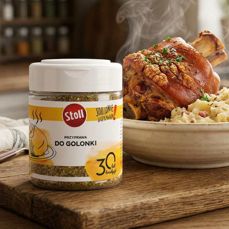 Opis: klasyczna, kompletna kompozycja do tradycyjnej golonki z mięsa. Gwarantuje doskonały smak oraz piękny, różowy wygląd i soczystość mięsa.