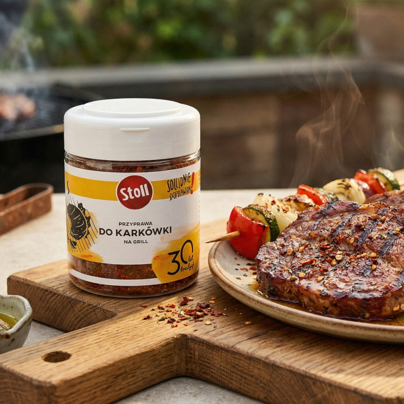 Przyprawa do karkówki na grill Stoll to oryginalna i doskonale zbilansowana kompozycja naturalnych składników. Gwarantuje niezrównany smak, a także wybitnie piękny wygląd mięsa oraz udaną ucztę! Wystarczy przed obróbką cieplną mięso najlepiej natrzeć bezpośrednio przyprawą z olejem i gotowe.