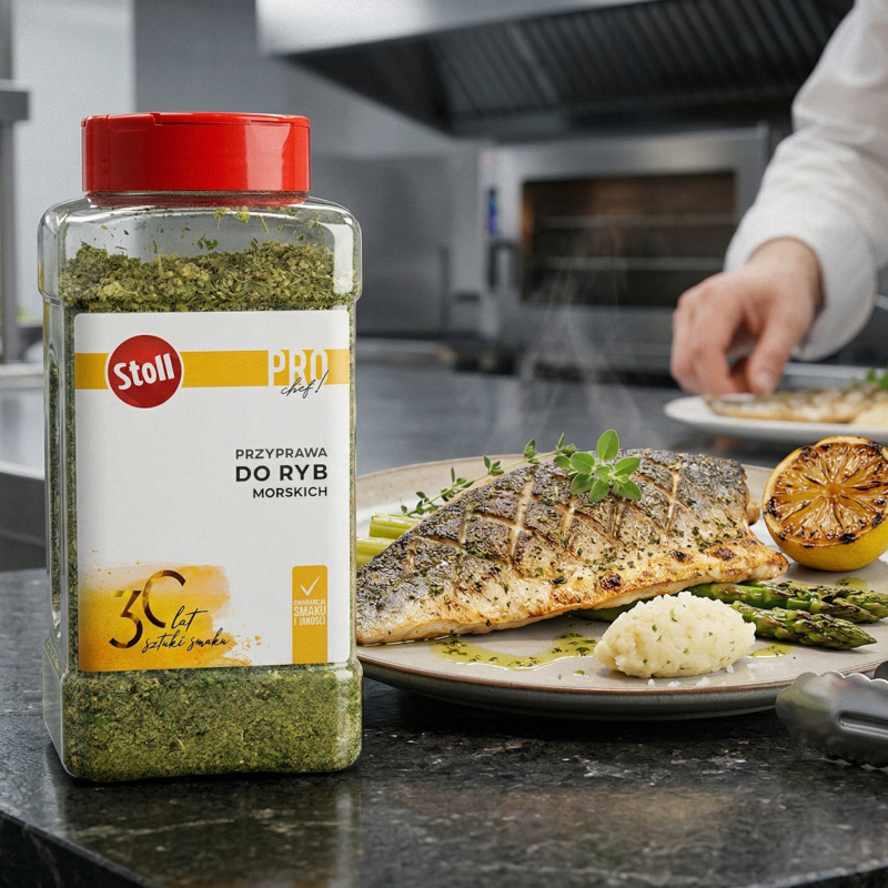 Opis: doskonale zbilansowana, kompletna kompozycja ziół i suszonych warzyw do słonowodnych ryb. Nadaje również delikatnej kwaśności, podkreślając wyraźniej ich smak. Znajduje zastosowanie jako dodatek do ryb gotowanych, pieczonych, smażonych, zarówno świeżych jak i mrożonych oraz owoców morza.